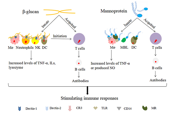 β-glucan induces B cells to produce IgG immunoglobulin by binding complement receptor type three (CR3), Dectin-1 or TLRs on macrophages, neutrophils, dendritic cells, and natural killer cells, and finally improve immune function in animals.