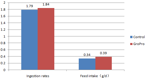 The initial weight of micropterus salmoides is 7.69+0.03g. After 8 weeks of cultivation, as shown in the figure above, the addition of GroPro to the diet can significantly improve the intake, feeding rate and specific growth rate of micropterus salmoides.