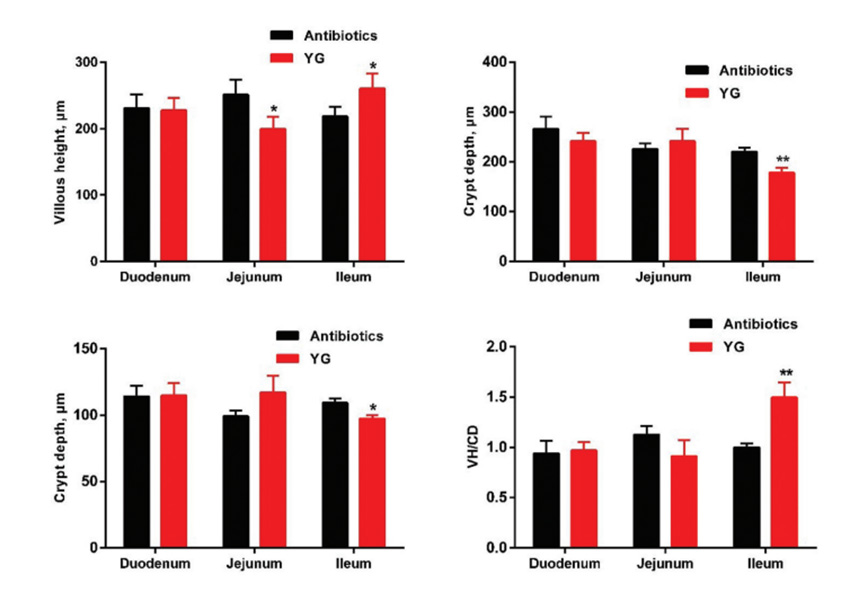 Fig.2 Effects of dietary supplementation with YG (YeaSense) on the histological evaluation of intestinal morphology