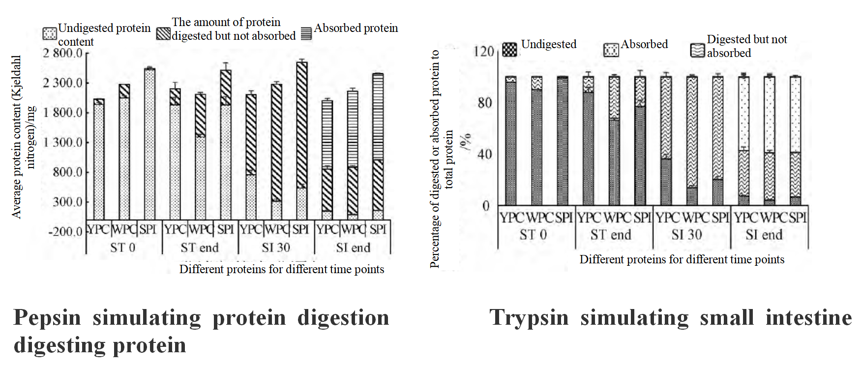 The in vitro digestion and absorption of three high-quality protein raw materials were compared. Whether from the amino acid composition or the in vitro simulated overall digestibility, the nutritional value of yeast protein was equivalent to that of soybean protein, which is the representative of high-quality plant protein.