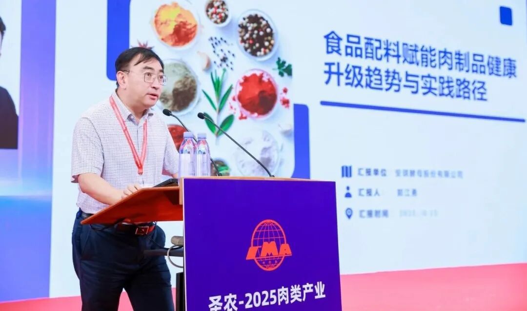 中国肉类协会肉类食品配料分会会长、安琪酵母股份有限公司总经理助理郭江勇应邀出席,并就“食品配料赋能肉制品健康升级趋势与实践路径”作专题分享。