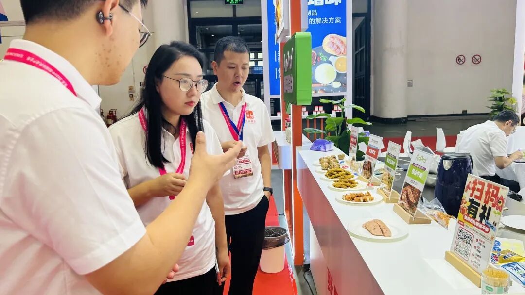 展会现场特设“鲜味库鲜味应用品尝区”,展出多款基于安琪技术开发的肉制品样品,吸引了众多专业观众驻足品鉴与交流。