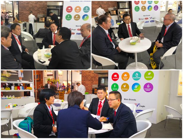 慕尼黑国际烘焙展三年一届,其专业性代表了欧洲乃至全球烘焙行业的最高水准,超过60个国家的近1500家烘焙企业的佼佼者参展。展会上,董事长俞学锋与焙考林、MIWE、谢尔夫咖啡、舒威尔、索地雅等多个战略合作伙伴的高层进行了互访交流。对于彼此间的合作,双方给予了高度肯定。对方极其认同俞董事长对行业发展的预期和判断,安琪的经营策略和方式能很好地促进彼此间的合作,双方未来的合作将不断开启新的领域。同时,俞董事长作为特邀嘉宾在舒威尔为中国焙烤糖制品工业协会和大用户举办的招待晚宴上发表了讲话。此外,俞董事长在展位上还接待了中国焙烤食品糖制品工业协会理事长朱念琳等一行。