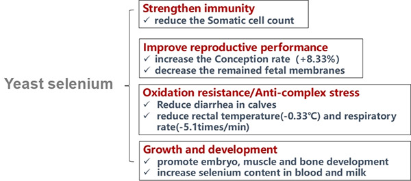 The above results showed that adding 0.3 ppm yeast selenium (YeaSel 2000ppm, Angel Yeast) to the diet increased the conception rate of cows during estrus by 8.33% after the 70 days, indicating that yeast selenium can significantly improve reproductive performance.