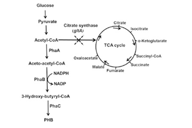 Inhibiting gltA gene expression directs more acetyl-CoA toward PHB synthesis
