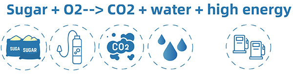 En el ambiente aeróbico, la levadura descompone el azúcar en dióxido de carbono y agua y obtiene gran cantidad de energía necesaria para el crecimiento, lo que acelera la reproducción. Este principio se utiliza para producir microbios de levadura en grandes cantidades.