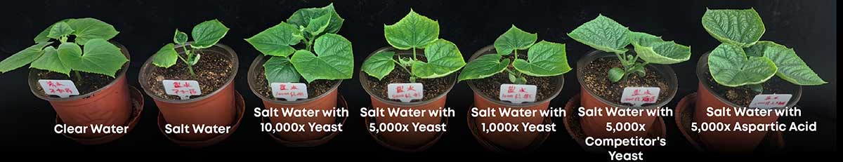 Case Three: The application of agricultural yeast significantly enhances cucumber's ability to resist salt stress and maintains normal growth. Compared to saline water treatment, the treatment with yeast (diluted 5000 times) resulted in a 40% increase in biomass, an 18% rise in superoxide dismutase (SOD), a 42.8% boost in peroxidase (POD), and a 16% reduction in malondialdehyde (MDA).