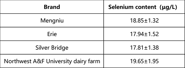 Table 2. Market common milk selenium content reference