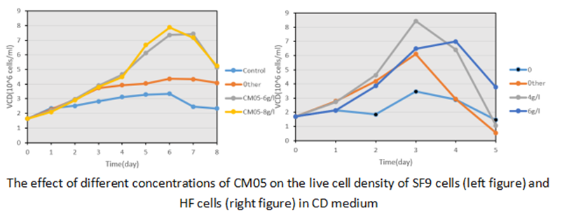 Angel CM05 is an amino acid-enriched hydrolysate, exhibiting a significant effect in promoting cell growth in insect cell lines.