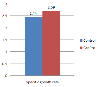 The initial weight of micropterus salmoides is 7.69+0.03g. After 8 weeks of cultivation, as shown in the figure above, the addition of GroPro to the diet can significantly improve the intake, feeding rate and specific growth rate of micropterus salmoides.