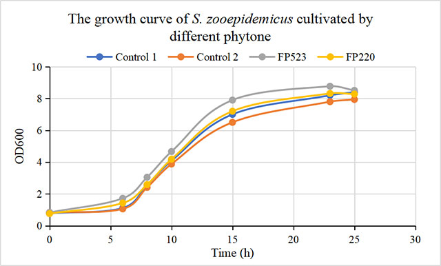 Fig.1 The growth curve of S. zooepidemicus cultivated by different phytone