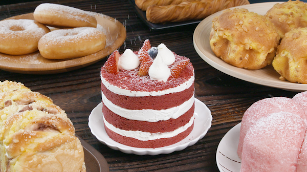 In this picture, the moisture-resistant icing sugar is basically insoluble in water because of the coating technology used. As a surface decoration, it can keep bakery and pastry products white and dry for a long time.