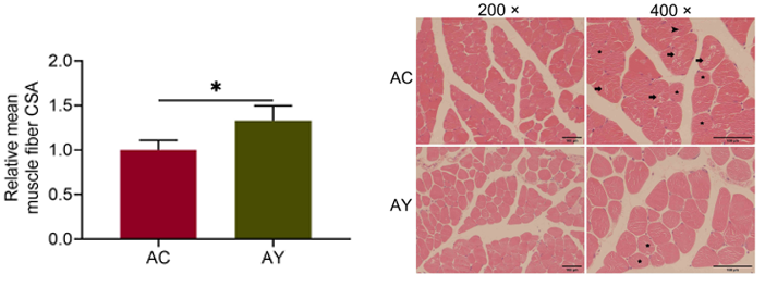 实验发现,补充酵母蛋白能够有效改善衰老大鼠的肌肉健康:在饲料中连续补充酵母蛋白三个月,能够显著改善衰老大鼠的肌肉组织病理特征,肌肉纤维萎缩、变形和核内陷等现象明显减少。