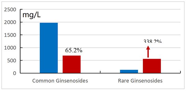 非発酵高麗人参と比較して、発酵高麗人参の一般的なギンセノシド含量は65.2%減少し、希少なギンセノシドは338.2%増加します。