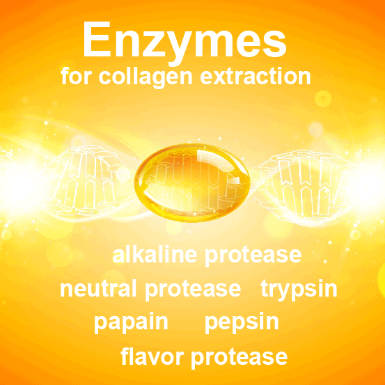 At present, the commonly used enzymes for collagen extraction include alkaline protease, neutral protease, trypsin, pepsin, papain and flavor protease. The complex enzyme is better than the single enzyme in enzymatic hydrolysis; it can improve the degree of hydrolysis and get the polypeptide with relatively small molecular weight.