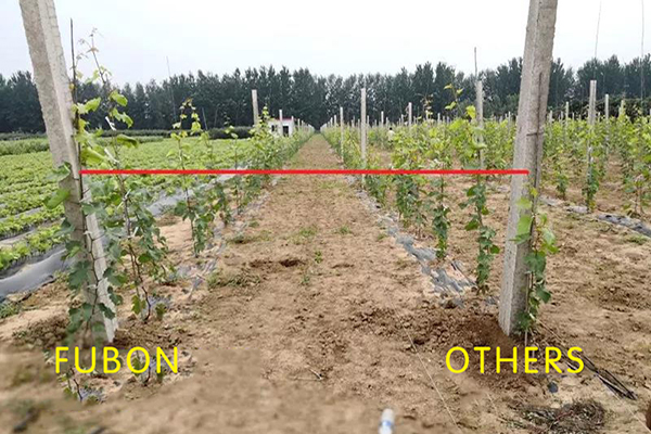 By fertilization comparison, we clearly found that the vines and leaf surface size of the grapes were strong in contrast. Boss Ding was very satisfied with the result and he was looking forward to the performance of the late fruit bearing.