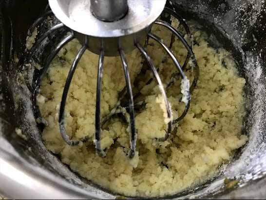 Step2: Place the fat, sugar and eggs in the mixing bowl. Cream these ingredients at low speed.