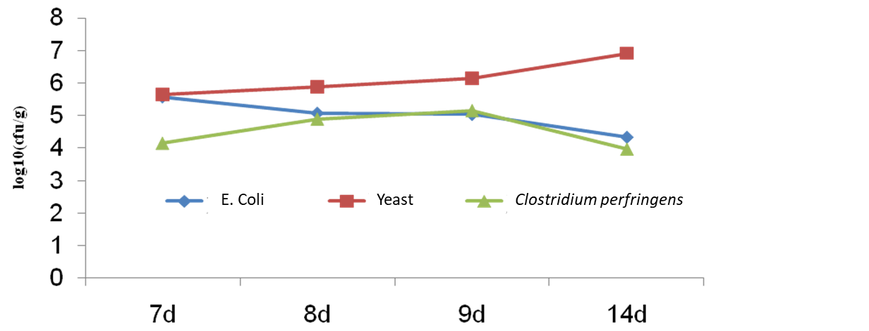 Fig.1 Effect of YeaVita on manure microorganism of layer(farm trail)