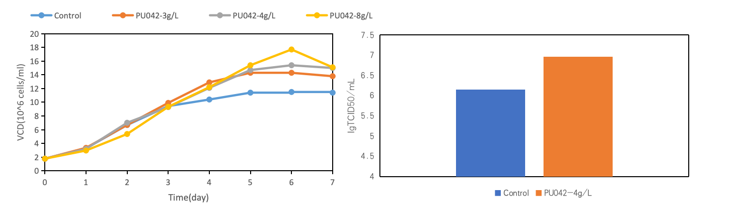 Fig2. PU042 improves SF9 cell density and viral titers