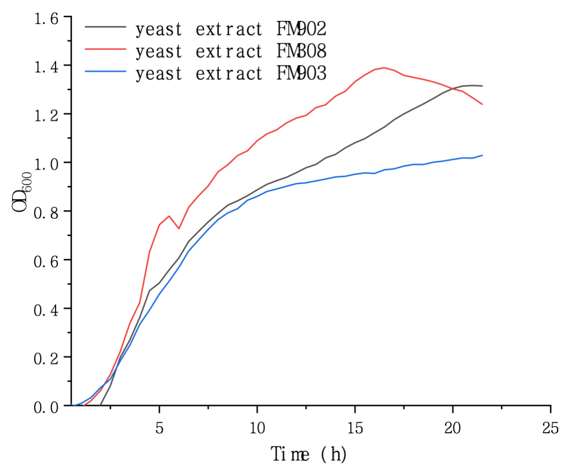 Figure 1. Growth Curves of E. coli BL21 Cultured with Different Yeast Extracts
