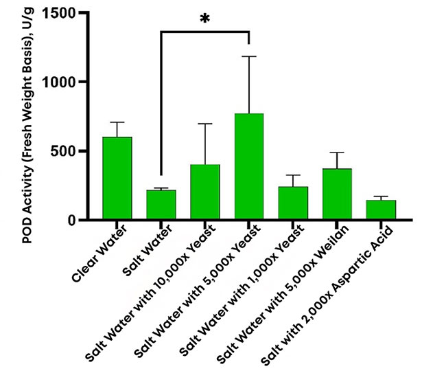 Case Three: The application of agricultural yeast significantly enhances cucumber's ability to resist salt stress and maintains normal growth. Compared to saline water treatment, the treatment with yeast (diluted 5000 times) resulted in a 40% increase in biomass, an 18% rise in superoxide dismutase (SOD), a 42.8% boost in peroxidase (POD), and a 16% reduction in malondialdehyde (MDA).