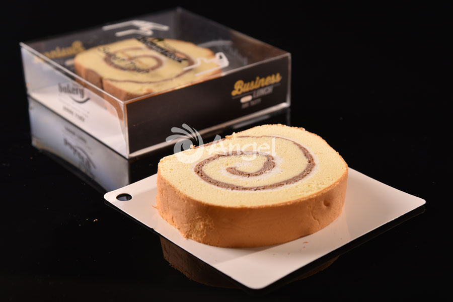 Chop the cake into cake roll of 18 centimeter and decorate the surface.