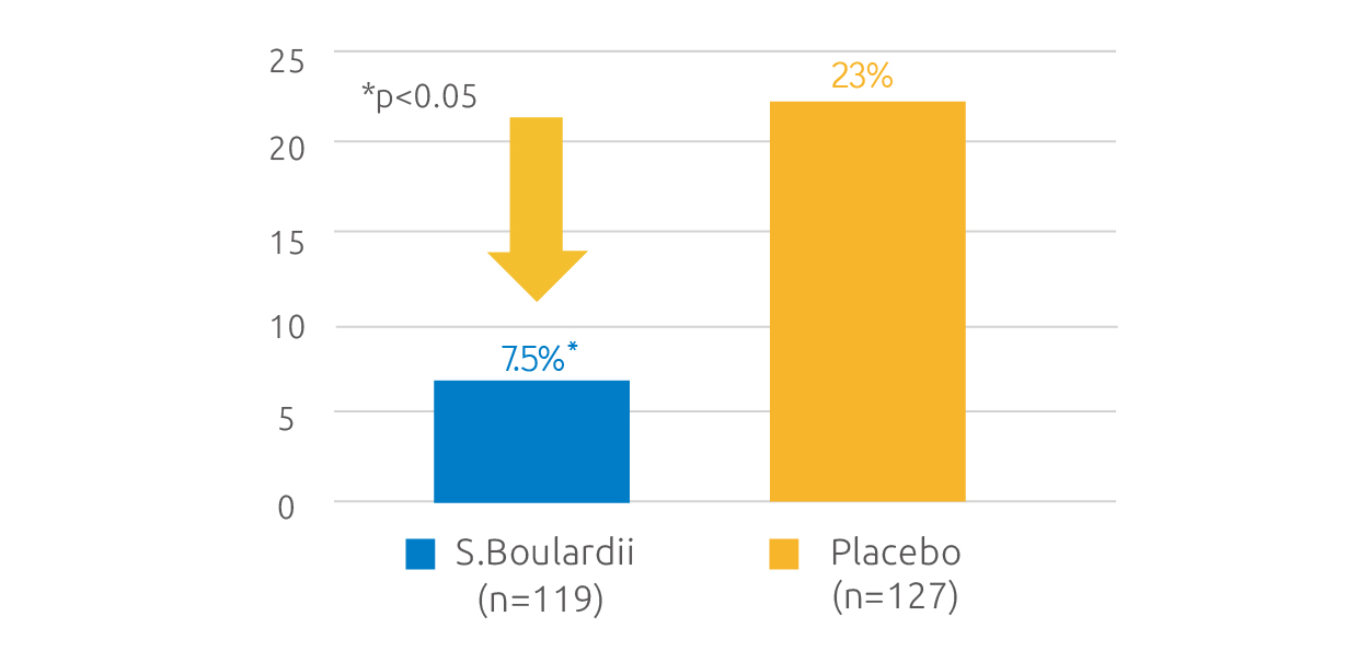 Como o S-boulardii não é bactéria, mas levedura, é menos influenciado por antibióticos, e tem sido relatado que a incidência de diarreia é significativamente reduzida quando o S-boulardii é combinado em comparação com o uso de antibióticos isoladamente.
