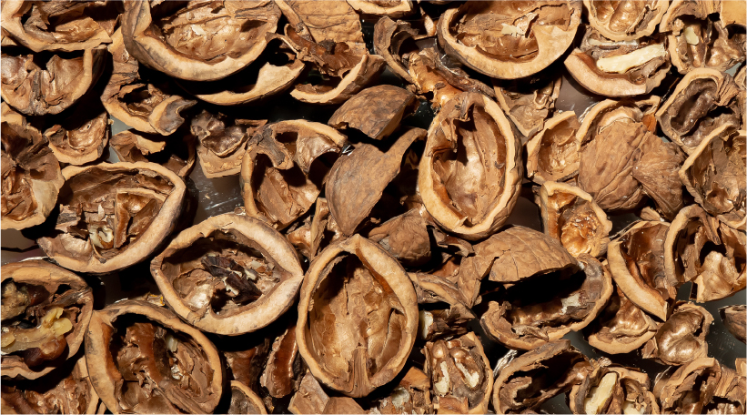 核桃壳中可代替棉籽壳、玉米芯等作为一种新型的食用菌栽培基质。另外,核桃壳也可以作为风味改良剂。 核桃壳经碳化可制成活性炭,用于吸附废水中的重金属离子和除去工业废气中的有毒气体,另外核桃壳高温热解气化过程中产生的核桃壳焦油可制成核桃壳焦油抗聚剂,用于氯丁橡胶的生产。 |